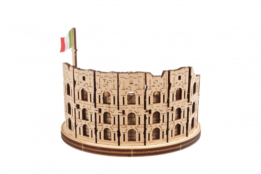 Elegantiškas medinis Koliziejaus modelis 1:1000 masteliu tiksliai atkuria ikoniškas arkas ir sluoksniuotas tribūnas šio antikinio amfiteatro. Surinkimas trunka apie 30 minučių ir nereikalauja klijų ar specialių įrankių. Idealiai tinka istorijos, architektūros mėgėjams ir kaip stilinga stalo ar lentynos dekoracija.