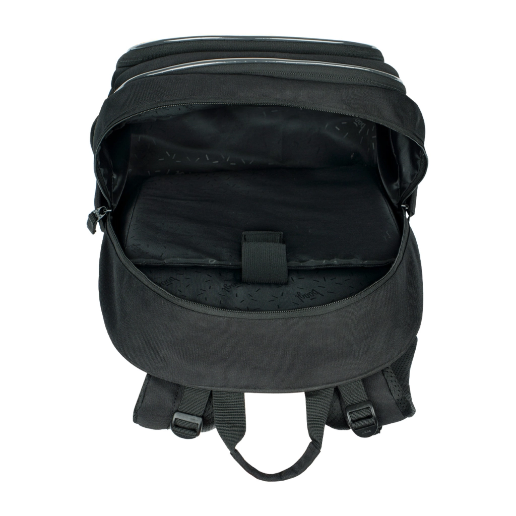 - Anatomiškai suformuota nugara su vėdinimu patogiam nešiojimui.