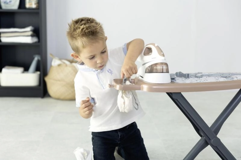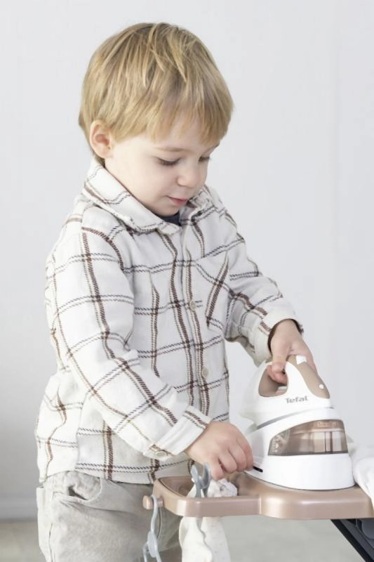Ši realistinė vaikiška lyginimo lenta su Tefal garų stotimi idealiai tinka mažiesiems namų pagalbininkams. Komplekte yra lygintuvas su mechaniniu pasukamu ratuku, kuris skleidžia „crick-crack“ garsą.