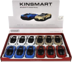 Atraskite ikonišką supersportinį automobilį kišeniniame dydyje: metalinį BUGATTI MISTRAL modelį iš Kinsmart su precizišku atlikimu, atgaline trauka greitam važiavimui ir atidaromomis durimis. Realistiškos detalės, kokybiškas metalo ir plastiko derinys bei kompaktiškas 13 cm ilgis pradžiugins ir vaikus, ir kolekcionierius.