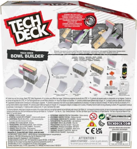 Rinkinys Tech Deck Bowl Builder suteikia realistišką fingerboarding patirtį kompakčiu formatu. Dėl rampų, bowl segmentų ir turėklų galite laisvai derinti ir plėsti išdėstymą pasitelkiant X-Connect sistemą. Komplekte yra ir išskirtinė fingerboard riedlentė, su kuria galėsite iškart po atidarymo išbandyti mėgstamus triukus.