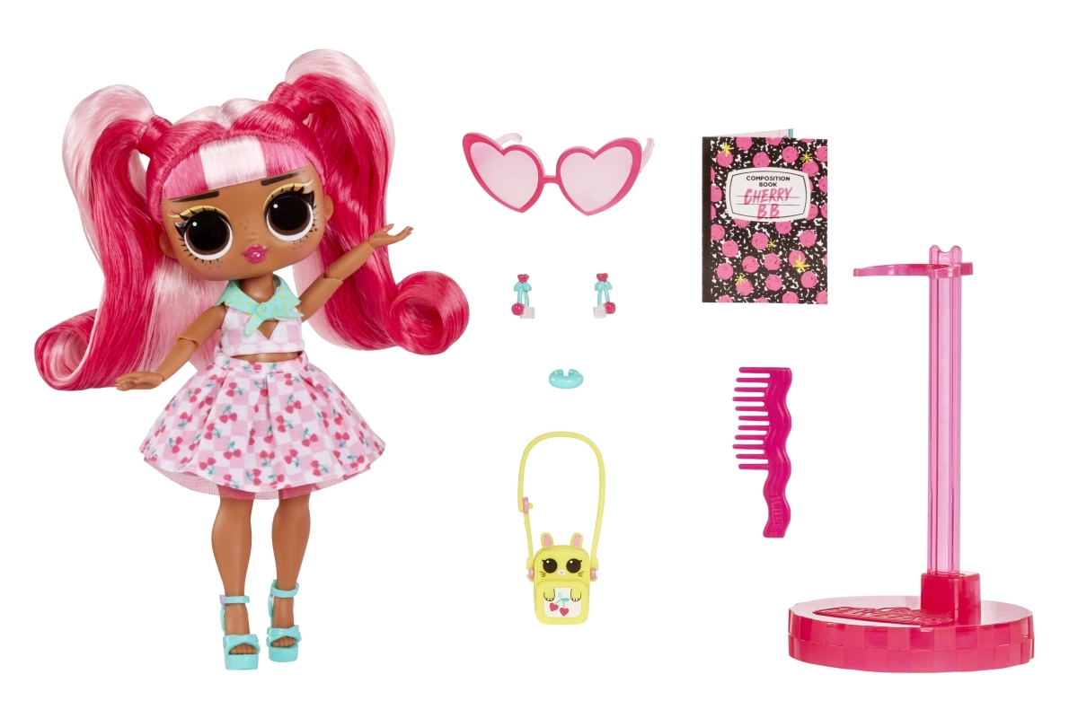 Atraskite išskirtinį lėlės L.O.L. Surprise Tweens Cherry B.B. stilių – ji atkeliauja akinamame dizaine su rožiniais kuodiukais, širdelių formos akiniais ir derančiais aksesuarais. Dėl sąnariuose judančių galūnių puikiai tinka pozavimui ir savų mados istorijų kūrimui.