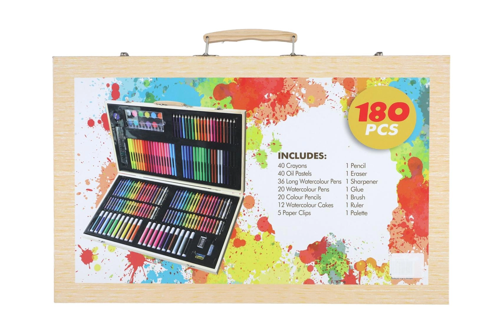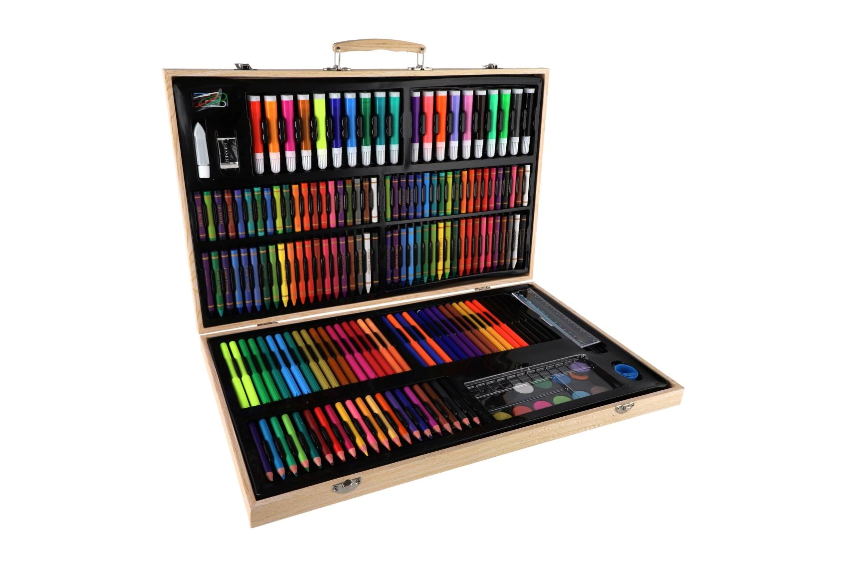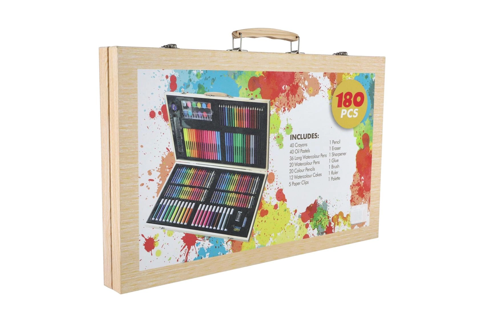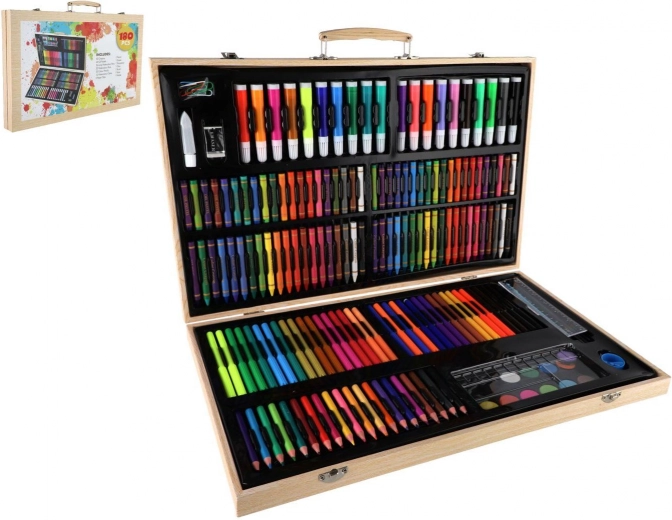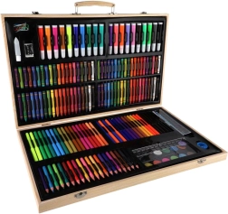 Šis gausus tapybos ir piešimo rinkinys idealiai tinka tiek pradedantiesiems, tiek pažengusiems entuziastams. Viską, ko reikia kūrybai, rasite vienoje vietoje – patogiame mediniame lagaminėlyje, kuris padeda įrankius laikyti tvarkingai ir visada po ranka.