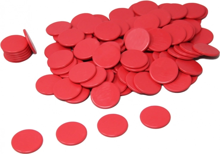 Mėgaukitės pramoga su raudonais žetonais, kuriuos galite naudoti skaičiavimui, taškų skyrimui arba įvairių užduočių vizualiam pavaizdavimui. Jie pagaminti iš 100% perdirbto plastiko, kuris po naudojimo vėl gali būti perdirbamas, todėl tai puikus pasirinkimas tvariai plėtrai.