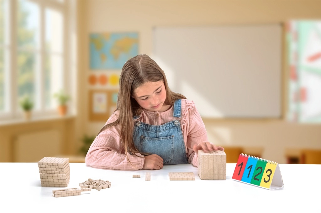 Dieneso pagrindinis rinkinys matematikos mokymui padeda vaikams geriau suprasti dešimtainės sistemos principus, manipuliuojant skirtingų verčių kaladėlėmis. Pagaminta iš ekologiškos RE-Wood® medžiagos, puikiai tinka individualiam ir grupiniam mokymuisi.