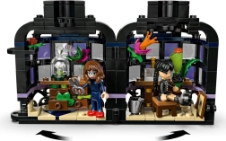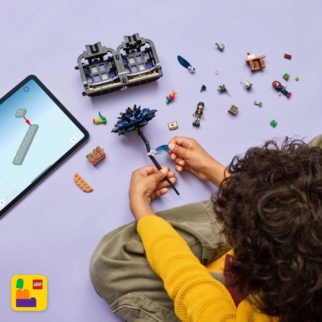 Dvi mini lėlės – Wednesday Addams ir profesorė Marilyn Thornhill – žadina vaizduotę ir prideda įtampos. Dėl apgalvotų detalių, judrių elementų ir komponavimo galimybių rinkinys puikiai tinka ekspozicijai ir žaidimui. Naudodamiesi LEGO Builder programėle vyresni vaikai gali lengvai konstruoti modelį, sukti jį 3D formatu ir sekti progresą.