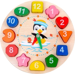 Medinis laikrodis su kaladėlėmis yra puiki mokomoji priemonė vaikų įgūdžiams lavinti. Jame yra 12 skirtingų spalvų kaladėlių su unikaliomis formomis, kurios telpa tik į tam tikrą vietą ciferblate – tai padeda vaikams lavinti atpažinimo ir derinimo gebėjimus.