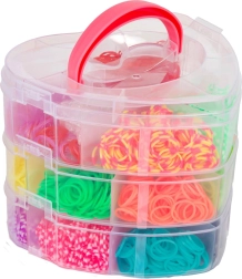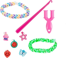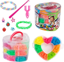 Kūrybinis rinkinys savo apyrankių ir aksesuarų gamybai idealiai tinka kiekvienam mažajam dizaineriui, kuris nori lavinti savo įgūdžius. Rinkinyje yra daugiau nei 2700 spalvotų gumelių ir pynimo įrankiai.