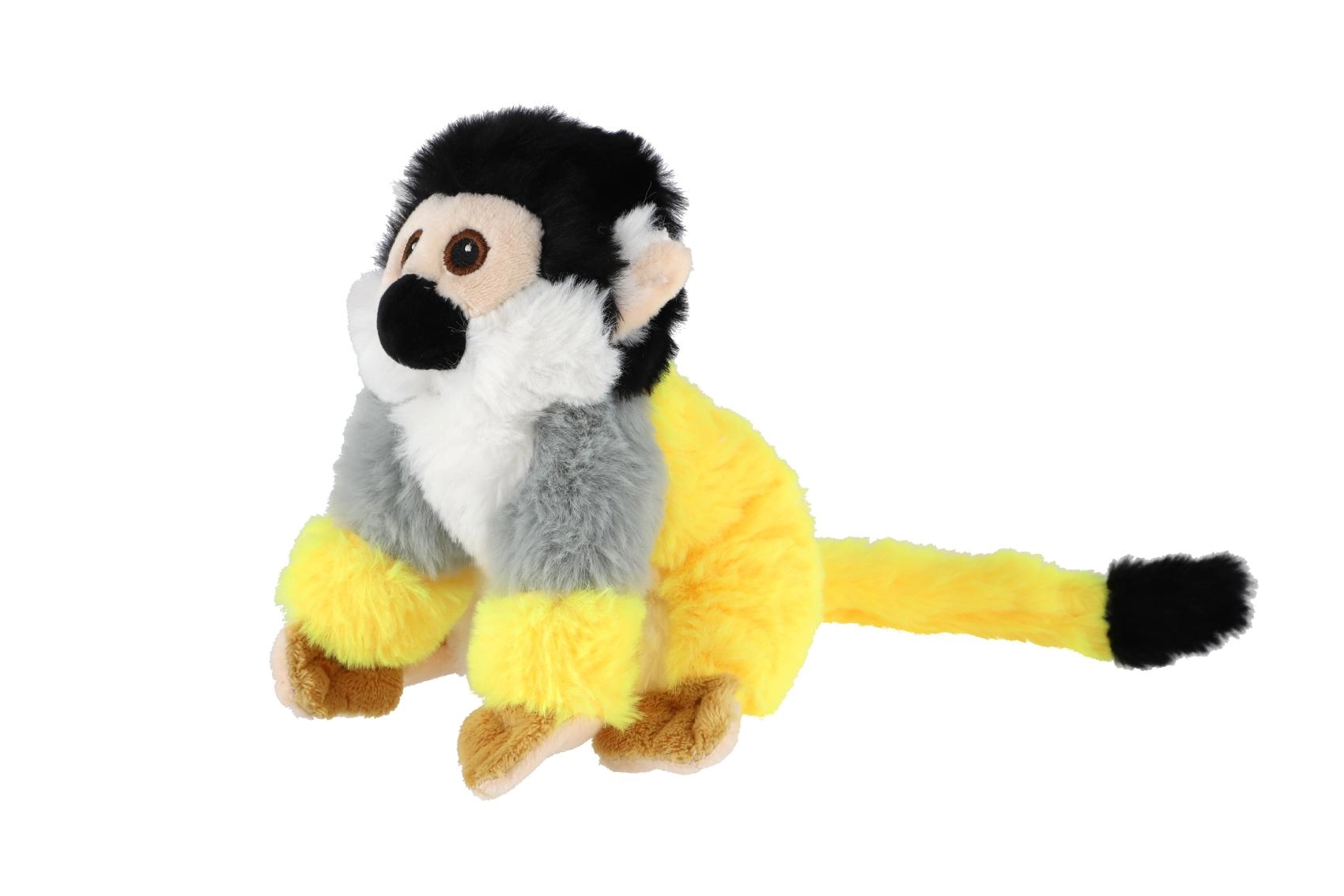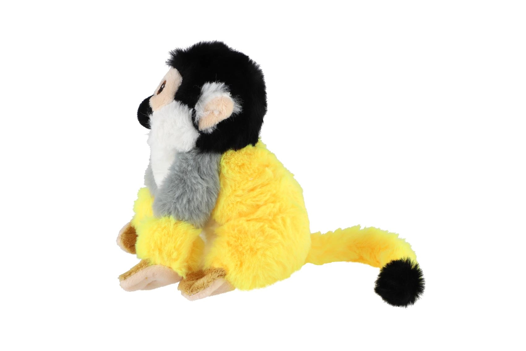 Ši plišinė beždžionėlė su būdinga marmozeto spalvų palete (geltona, pilka, juoda ir balta) sužavi iš pirmo prisilietimo. Minkšti ir purūs plaukeliai, ilga uodega ir išraiškingos siuvinėtos akys lavina smulkiąją motoriką ir vaizduotę žaidžiant.