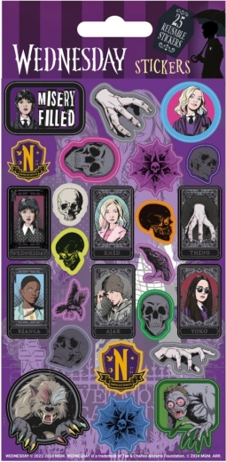 Kiekviename lipdukų lape yra 25 unikalūs motyvai, įkvėpti populiaraus serialo „Trečiadienė“. Nesvarbu, ar esate serialo gerbėjas, ar ieškote originalaus būdo papuošti sąsiuvinius, nešiojamąjį kompiuterį ar kitus paviršius, šie lipdukai – puikus pasirinkimas. Dėl daugkartinio naudojimo galite keisti jų vietą pagal nuotaiką. Jų dydis leidžia lengvai naudoti ir puikiai atrodo ant bet kokio paviršiaus.