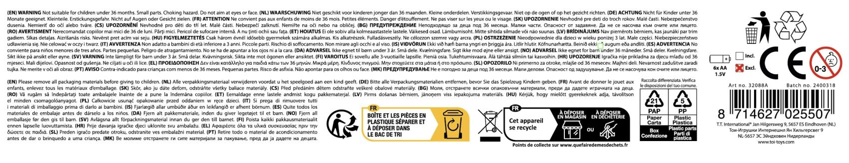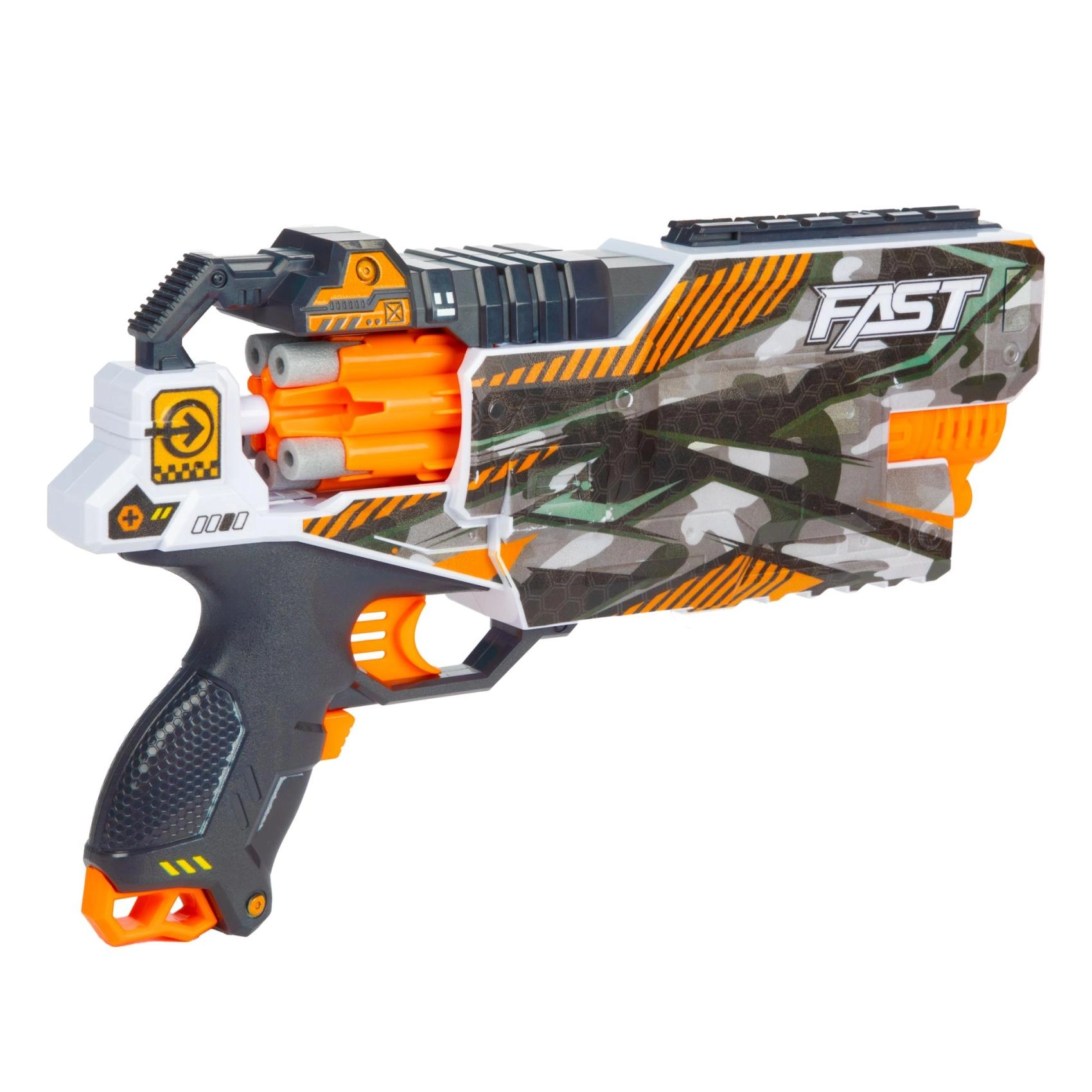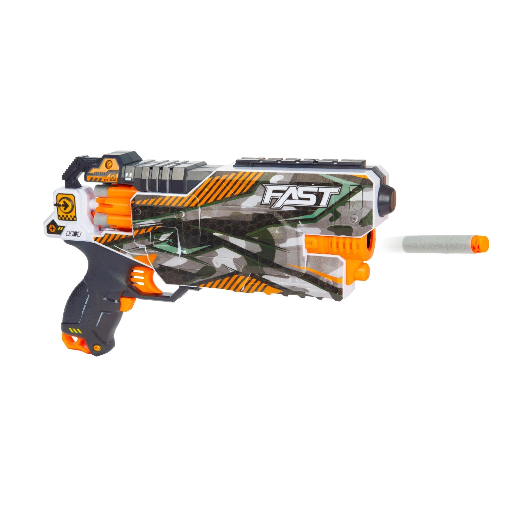 Pasiruoškite veiksmo nuotykiams su šiuo putų šovinių pistoletu. Dėl stilingo kamufliažinio dizaino ir automatinio užtaisymo susišaudymas namuose ar lauke bus tikrai smagus. Šovinių skrydžio nuotolis iki 15 metrų užtikrina, kad jūsų koviniai įgūdžiai bus rimtai išbandyti. Idealu vaikams nuo 3 metų.