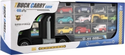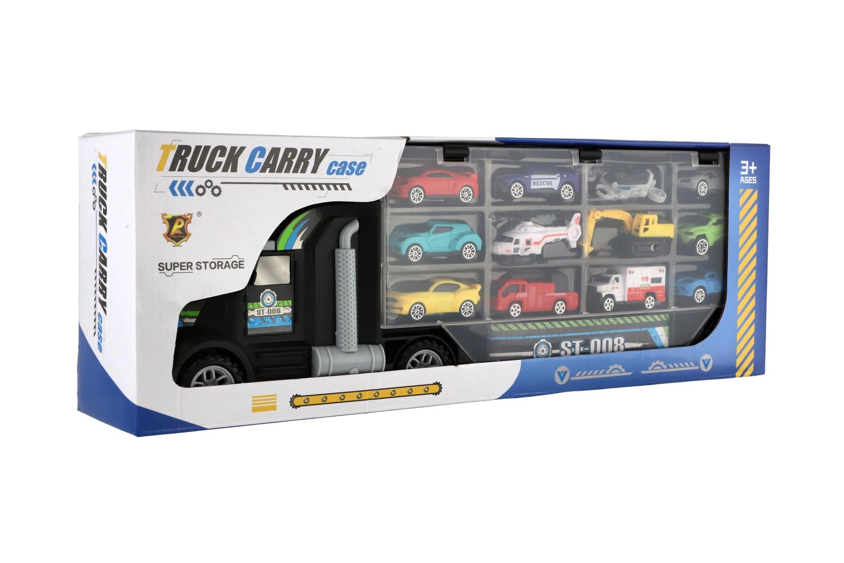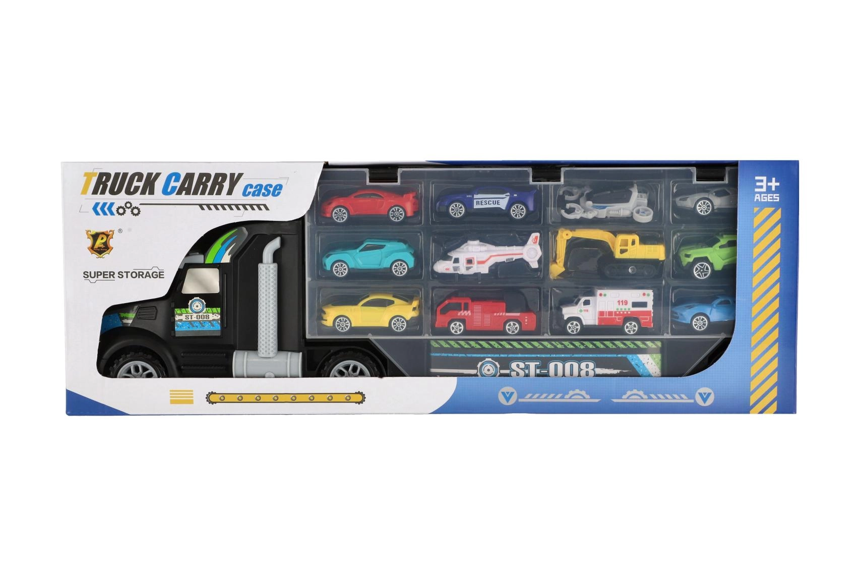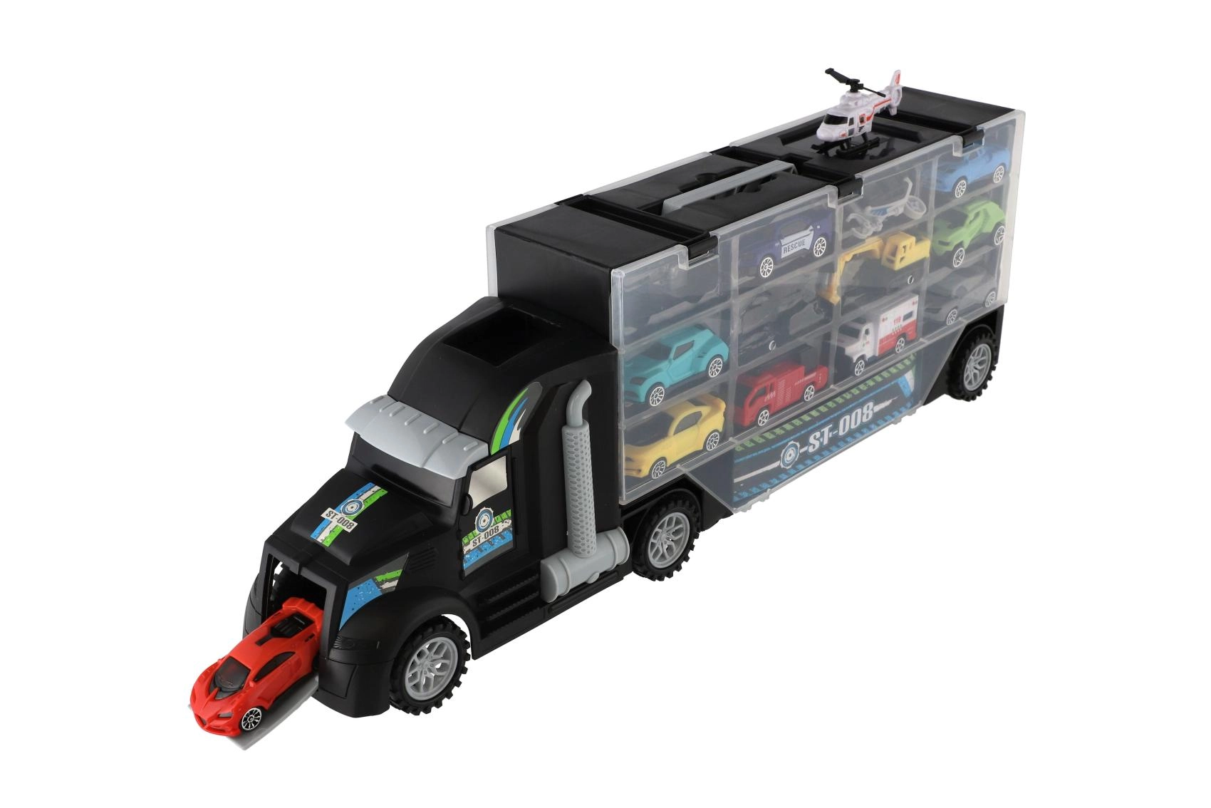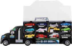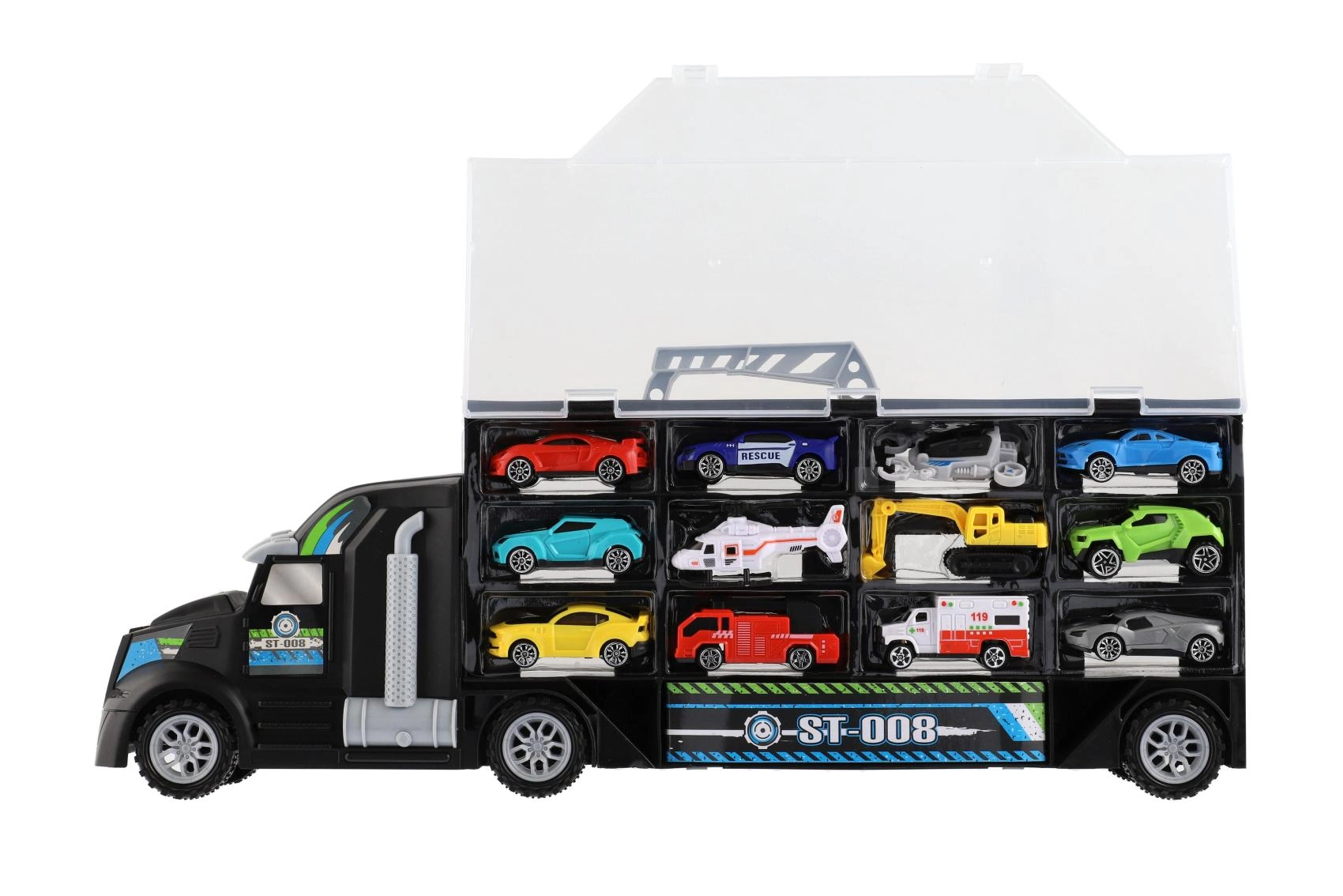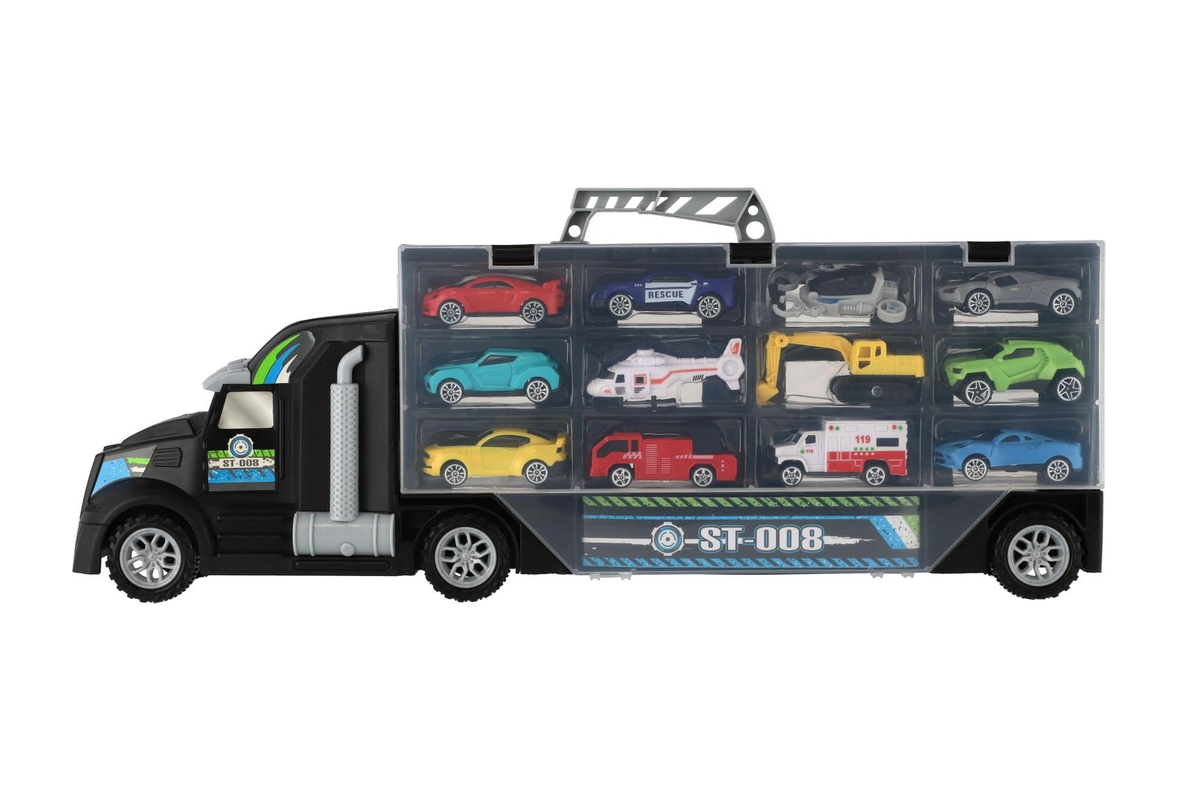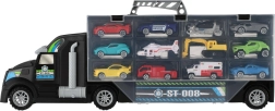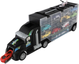 Didelis transporterinis vilkikas su laisva eiga yra idealus dovanos pasirinkimas mažiesiems automobilių entuziastams. Šis daugiafunkcis vilkikas tarnauja kaip laikymo dėžė ir žaidimų rinkinys, leidžiantis lengvai transportuoti ir eksponuoti transporto priemones.