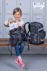 Unikali keičiamų ženklelių sistema išvaizdos personalizavimui, erdvus vieno aukšto penalas su kišenėle ir avalynei ar sportui skirtas maišelis iš tvirtos, plaunamos medžiagos.