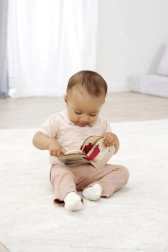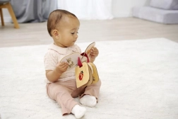 Praktiškas tvirtinimo žiedas leidžia saugiai pasiimti knygelę į kelionę ir pritvirtinti ją prie vežimėlio arba automobilinės kėdutės. Ji pagaminta iš 100 % liepmedžio su FSC sertifikatu, todėl atitinka kokybiško ir tvaraus žaislo reikalavimus patiems mažiausiems nuo 12 mėn.
