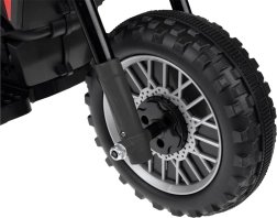Masyvūs ratai su slopinančiomis juostomis mažina triukšmą ir vibracijas ant kieto ar nelygaus paviršiaus. Elektrinis stabdis automatiškai įsijungia atleidus akceleratoriaus pedalą, kas idealiai tinka pradedantiesiems vairuotojams. Paprastas įlipimas ir išlipimas skatina vaiko savarankiškumą ir palengvina tiek trumpas, tiek ilgesnes keliones.