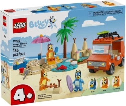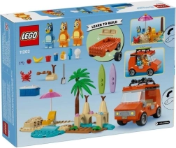 Mėgaukitės šeimos nuotykiais su BLUEY, Bingo ir mama spalvingame rinkinyje su automobiliu, paplūdimiu ir daugybe priedų. Atidaromas automobilio stogas, banglentės, smėlio pilis ir žaismingos minifigūrėlės lavina kūrybiškumą, vaizduotę ir pirmuosius vaikų nuo 4 metų konstravimo įgūdžius.