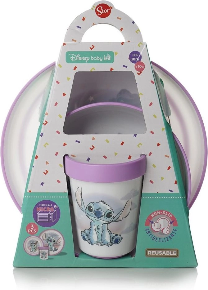 Mielas vaikiškas valgymo rinkinys 3 viename su LILO & STITCH motyvu pagyvins kiekvieną valgymą. Sudėtyje yra lėkštė, dubenėlis ir puodelis, yra be BPA, o dalys tinka mikrobangų krosnelei ir indaplovei (žr. specifikaciją).