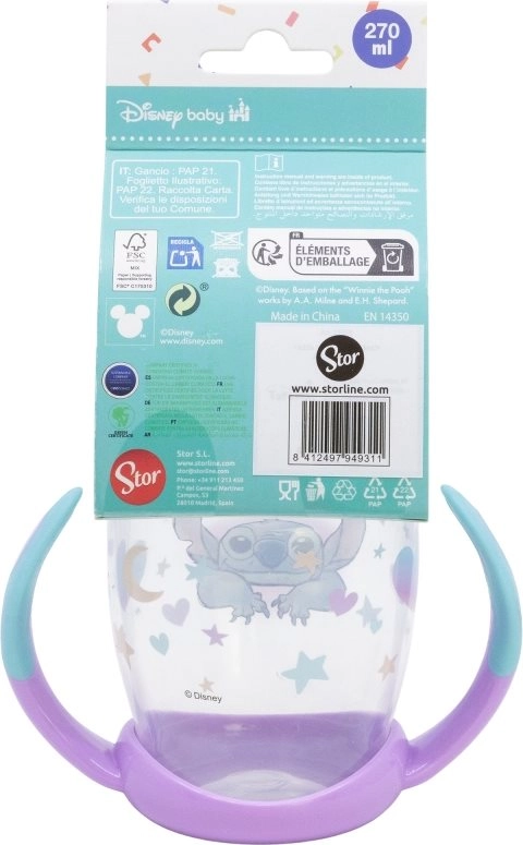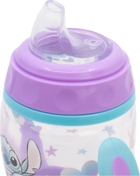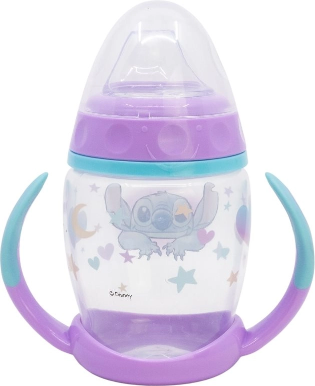 Puodelis su ąselėmis ir silikoniniu snapeliu STITCH 270 ml padeda vaikams patogiai ir saugiai pereiti nuo buteliuko prie puodelio. Minkštas snapelis švelniai veikia jautrias dantenas ir dantukus, o neslystantys laikikliai užtikrina tvirtą sukibimą net mažoms rankytėms.