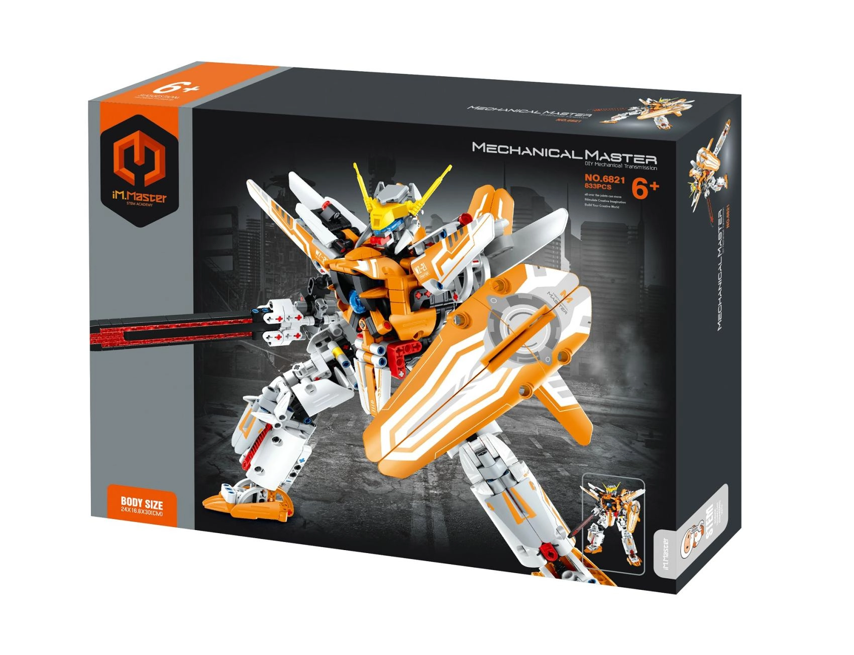 Sukonstruokite įspūdingą kovinį robotą iš daugiau nei 800 detalių! Rinkinyje iM.MASTER yra judančios rankos, kojos, galva ir ginklai, patrauklus oranžinis–baltas dizainas ir futuristinė išvaizda. Puikus pasirinkimas STEM ugdymui – lavina mechaninį mąstymą, erdvinę vaizduotę ir smulkiąją motoriką.