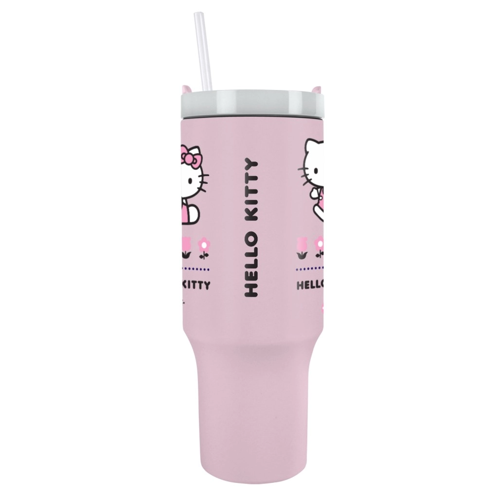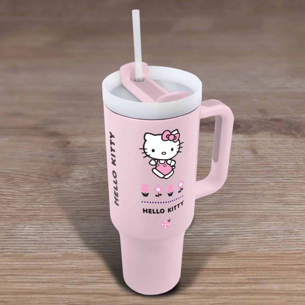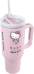 Stilingas kelioninis puodelis su Hello Kitty motyvu patogiam gėrimų vartojimui kelyje ir namuose. Nerūdijančio plieno dėka gėrimai ilgai išlieka karšti arba šalti, jis turi ergonomišką dizainą, praktišką dangtį su šiaudeliu ir patogią rankeną lengvam naudojimui. Idealu automobiliui, darbui ir išvykoms. Talpa 1200 ml.