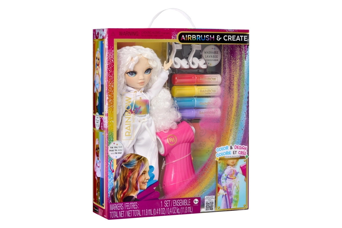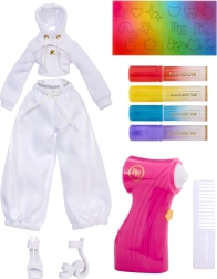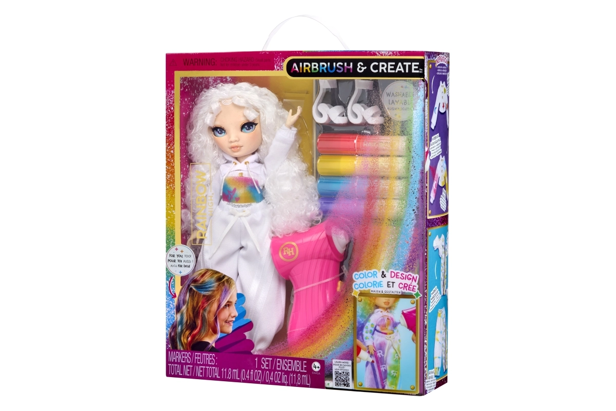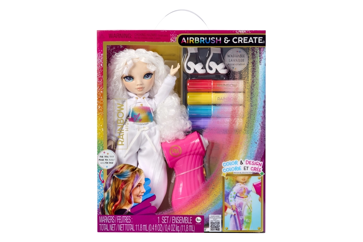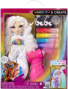 Ši kūrybinė lėlė yra tarsi tuščias drobės lapas – visiškai balta, su baltais plaukais ir apranga, paruošta jūsų fantazijai. Rinkinyje rasite keturis nuplaunamus vaivorykštės flomasterius (raudoną, geltoną, mėlyną, violetinį) ir patogų airbrush toliems šešėliavimams bei tolygiam spalvos padengimui.