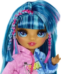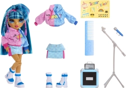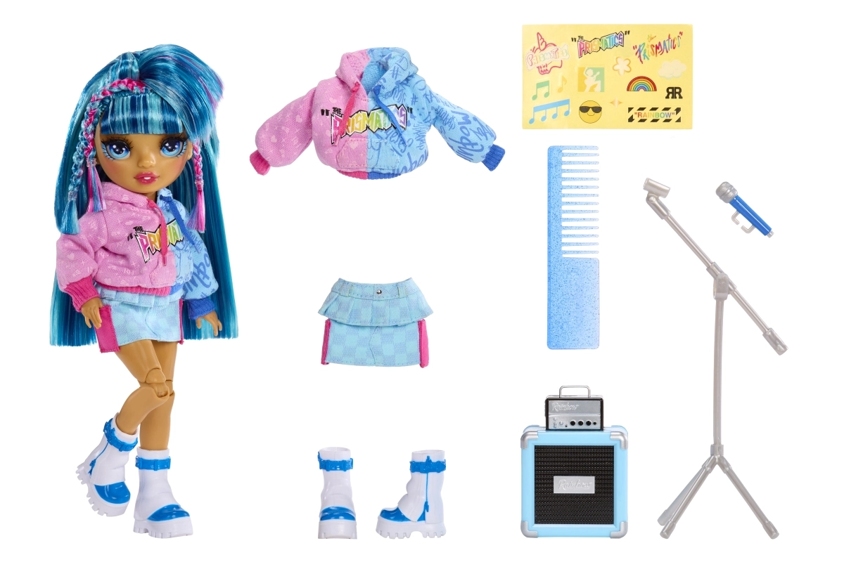 Lėlė Skyler Bradshaw iš Rainbow High Jr. High kolekcijos spindi ikoniška mėlyna spalva ir pasirengusi scenai. Dėl pilnai lanksčio kūno ją lengvai pastatysi į įspūdingas pozas, o su mikrofonu ir mini stiprintuvu sukursi tikrą šou. Detaliai ištobulintas įvaizdis, ilgi mėlyni plaukai ir teminiai aksesuarai daro šią lėlę puikiu pasirinkimu tiek žaidimui, tiek ekspozicijai.