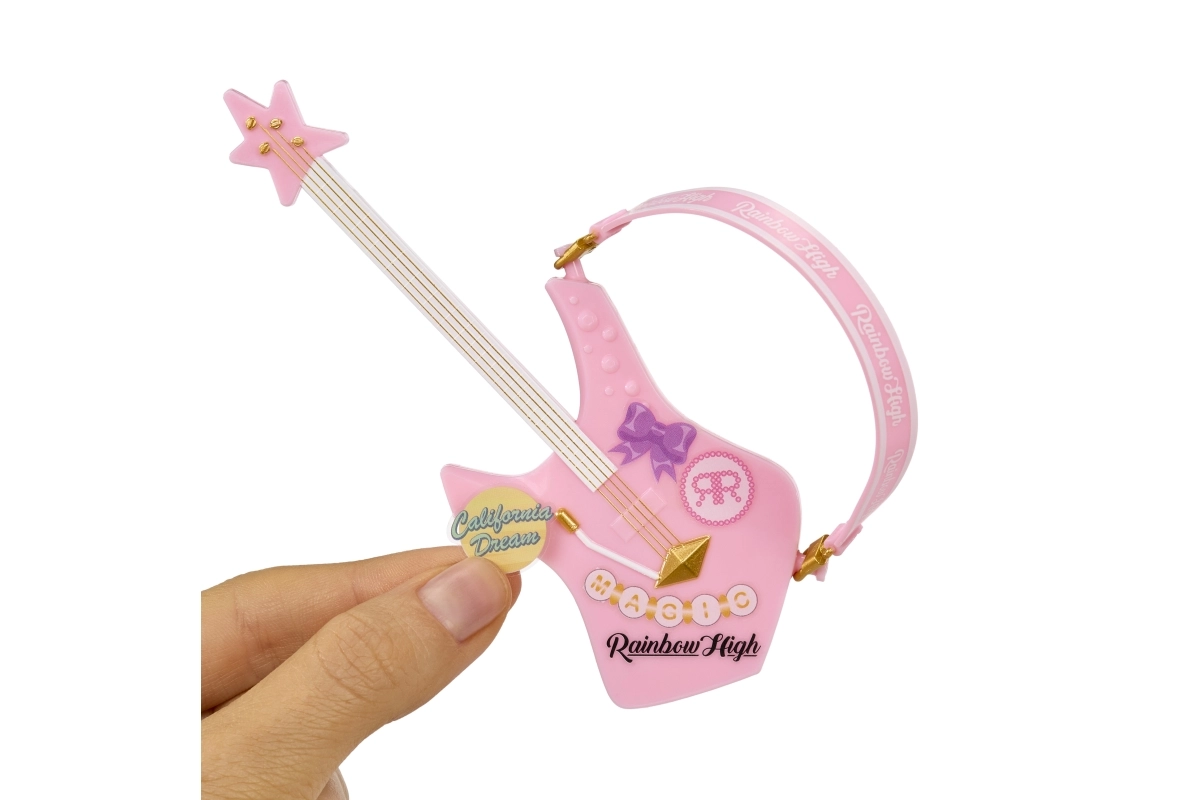 Komplekte yra rožinė bosinė gitara su žvaigždžių dizainu, su kuria Bella įkaitins kiekvieną scenos nuotykį.
