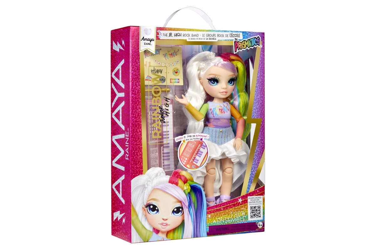 Amaya Raine iš Rainbow High Jr. High serijos atveria vaikams mados ir muzikos pasaulį vienoje žavingoje lėlėje. Dėl ilgų vaivorykštinių plaukų, detalaus apdaro ir sąnarių ji pasiruošusi koncertams, fotosesijoms ir ekspozicijai lentynoje. Aksesuarai, įskaitant mini klavišus, skatina žaidimą muzikos žvaigžde.