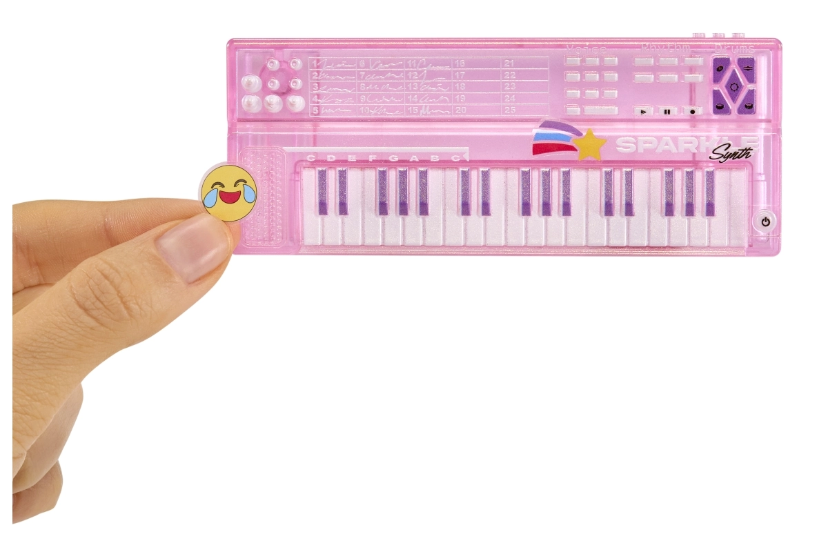 Į komplektą įeina rožinis mini pianinas su stovu – ideali rekvizita vaidmenų žaidimams ir savo koncertinių istorijų kūrimui.