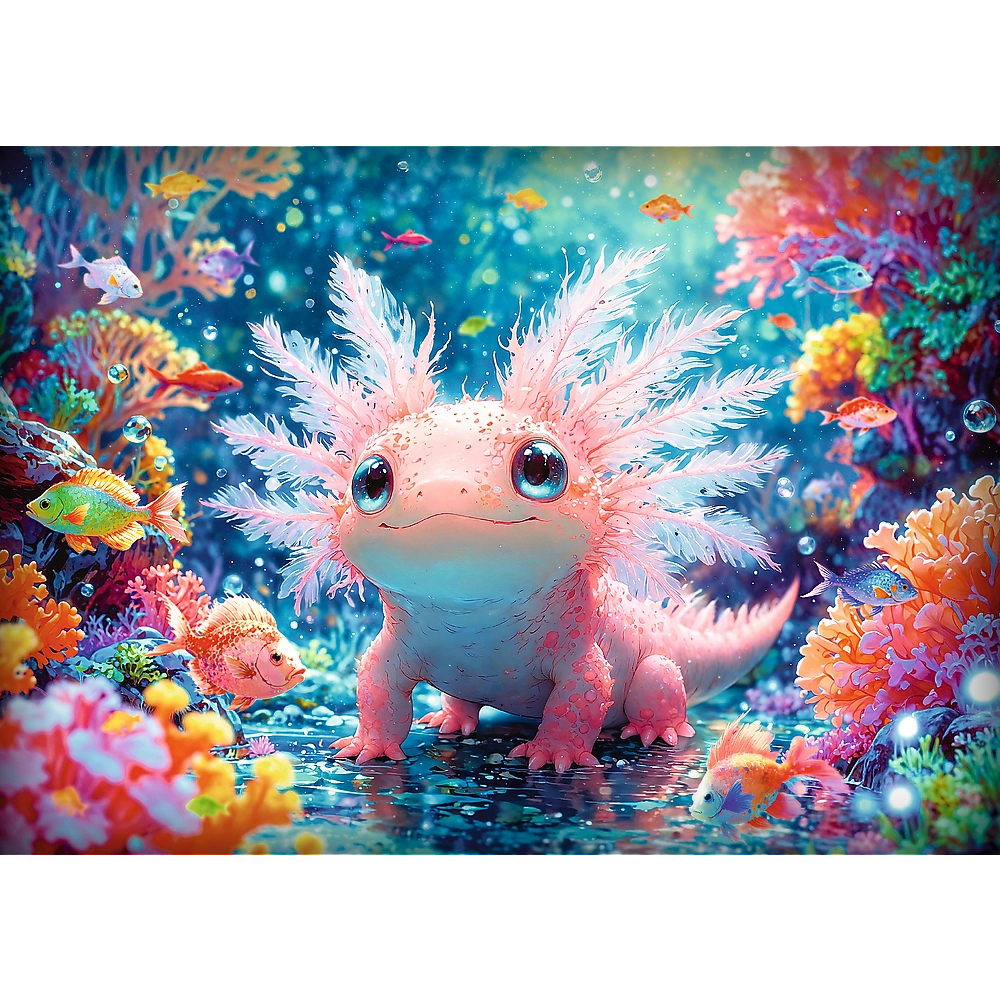 Atraškite dėliojimo grožį su Trefl dėlionės motyvu – aksolotliu. Rinkinyje yra 500 dalių, o sudėtos dėlionės dydis – 48 × 34 cm. Pagaminta Lenkijoje iš aukštos kokybės medžiagų, atsižvelgiant į aplinkosaugą, ir padengta specialiu popieriumi, mažinančiu atspindžius patogesniam dėliojimui.
