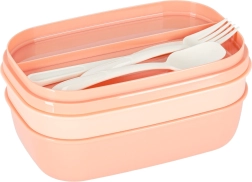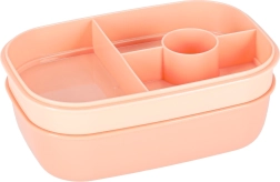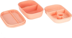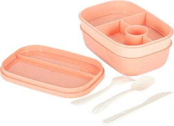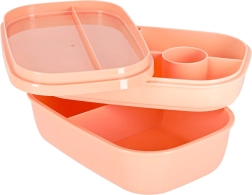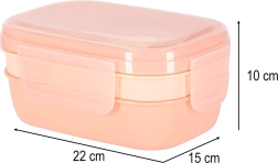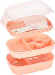 Trijų aukštų konstrukcija su 8 pertvaromis leidžia atskirai susidėti pagrindinį patiekalą, garnyrus ir užkandžius. Keturios užsegamos sąvaržos tvirtai uždaro dangtelį su silikoniniu tarpikliu, tad turinys išliks saugus net krepšyje. Abrikoninė spalva suteikia modernią išvaizdą.