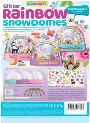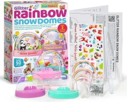 Pakuotėje rasite viską, ko reikia iki trijų sniego rutulių gamybai – nuo permatomų kupolų ir stovelių iki margaspalvių blizgučių, lipdukų ir aiškaus vadovo. Dėl paprastos eigos projektas tinka net pradedantiesiems ir yra idealus kaip dovana arba vaikų kambario dekoracija.