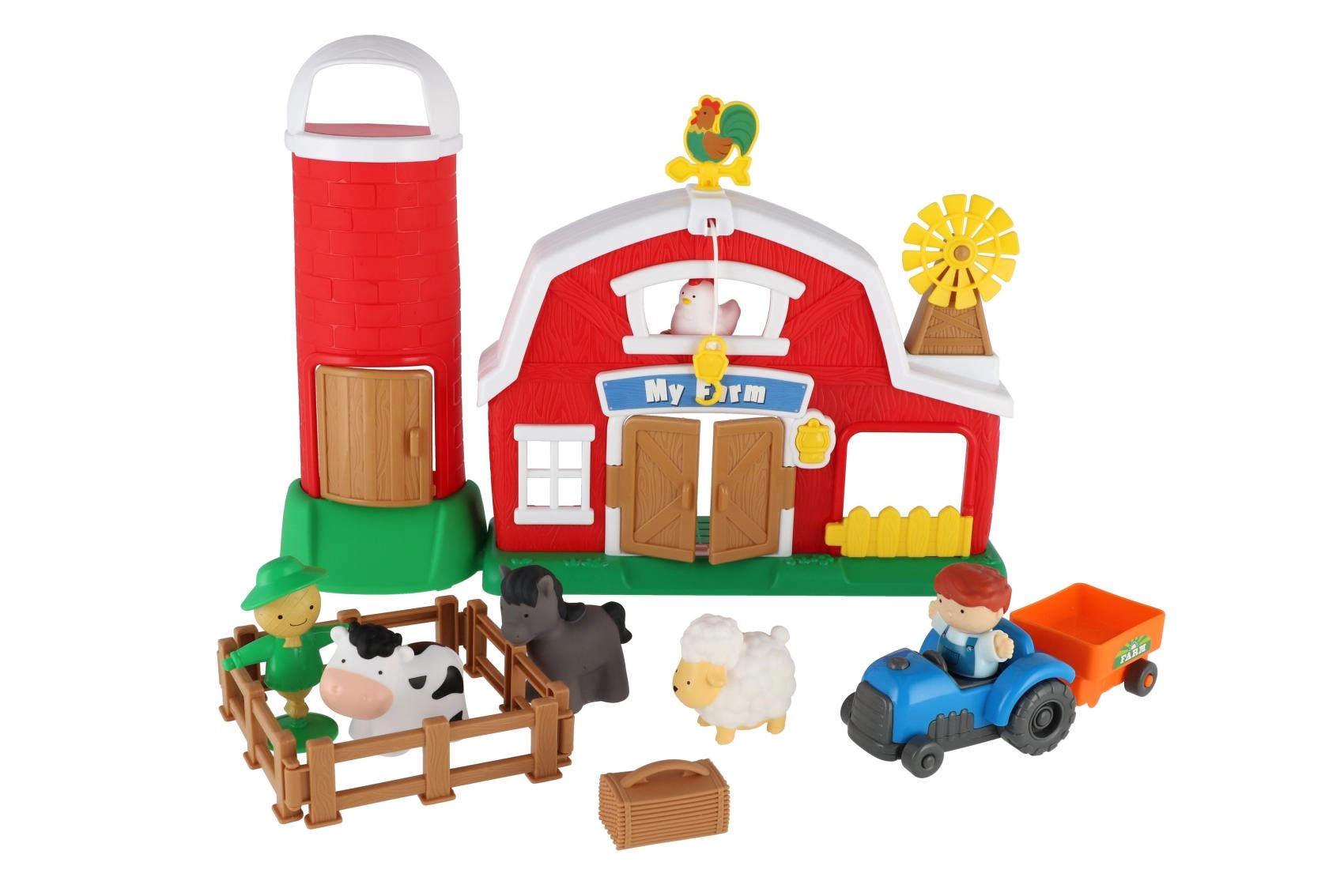 Ši žaisminga ferma atneša kaimo pasaulį tiesiai į vaikų kambarį. Spalvingas tvartas su grūdų silosu, atidaromomis dalimis ir gausybe priedų įkvepia kurti kūrybingas istorijas. Įjungus pasigirsta fermos garsai, kurie stiprina sensorinius pojūčius ir įtraukia vaikus į žaidimą.
