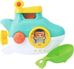 Linksmas plastikinis povandeninis laivas voniai pavers kiekvieną maudynę mažu nuotykiu. Dėl siurbtukų jį lengvai pritvirtinsite prie vonios sienelės ar plytelių, į viršutinę dalį galima pilti vandenį samteliu ir stebėti judančius elementus bei vandens efektus. Ryškus dizainas skatina vaizduotę ir smulkiosios motorikos lavinimą. Tinka vaikams nuo 12 mėnesių.