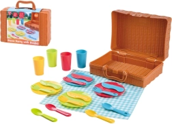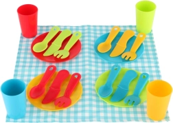 Mėgaukitės žaismingomis vaišėmis bet kur su šiuo spalvingu rinkiniu patogiame krepšelyje. Jame yra viskas, ko reikia serviruoti keturiems – lėkštės, puodeliai ir stalo įrankiai – taip pat ir pledas. Lengva ir saugi konstrukcija idealiai tinka vaikams nuo 2 metų ir puikiai lavina vaizduotę bei socialinį žaidimą namuose, sode ar lauke.