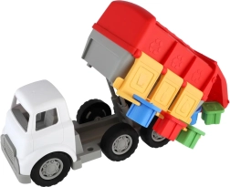 Smagus plastikinis šiukšliavežis mažiausiems sujungia atliekų rūšiavimą, formų dėliojimą ir spalvų mokymąsi. Dėl laisvos eigos sklandžiai rieda grindimis, turi atidaromas dėtines ir nuimamus konteinerius tikroviškam žaidimui. Puikiai tinka smulkiajai motorikai, loginiam mąstymui ir vaizduotei lavinti vaikams nuo 18 mėn.
