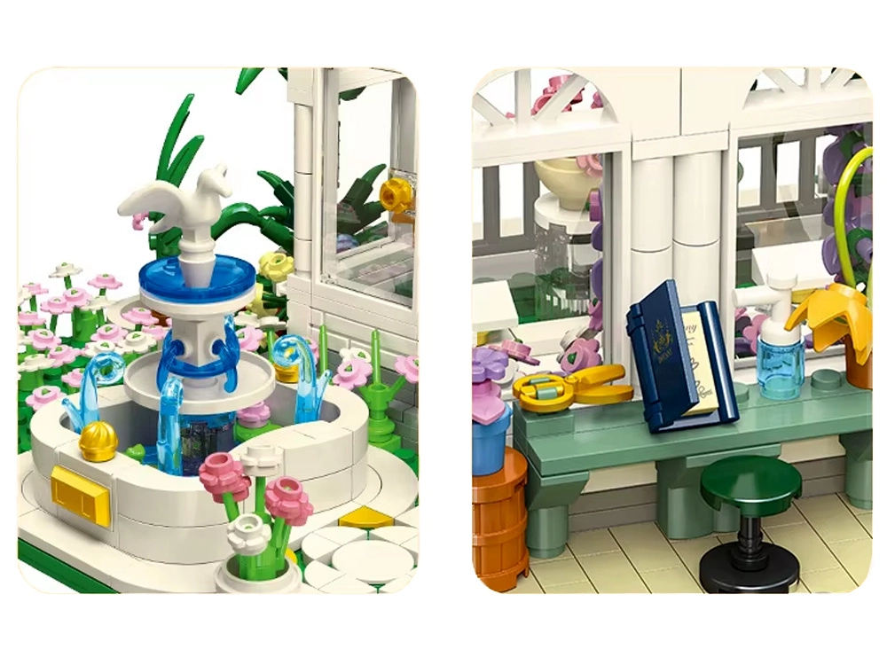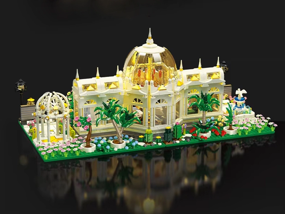 Atraskite klasikinių linijų darną ir sodo romantikos žavesį. Konstruktorius leidžia surinkti detaliai ištobulintą paviljoną su simetriškais fasadais, stiklinėmis įgilinimų užpildomis ir turtinga gėlių puošyba. Dominuoja įspūdingas skaidrus kupolas, po kuriuo atsiskleidžia visi interjero ir eksterjero smulkūs akcentai.