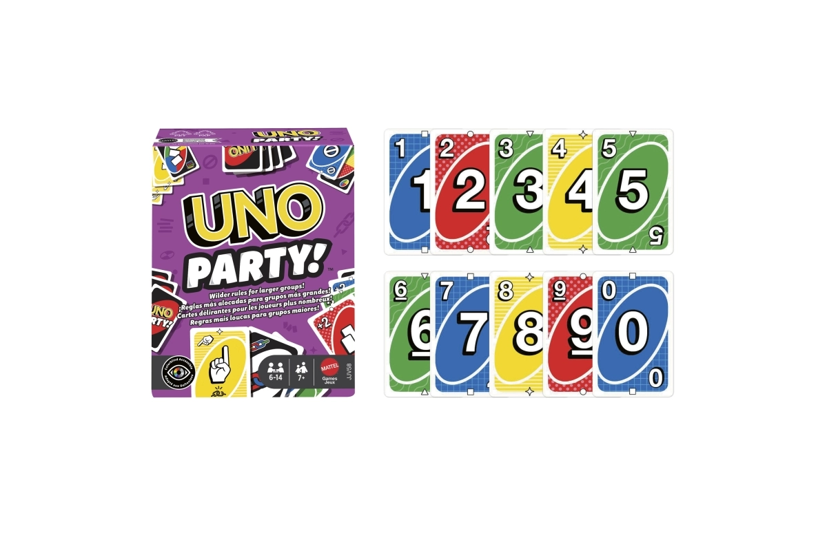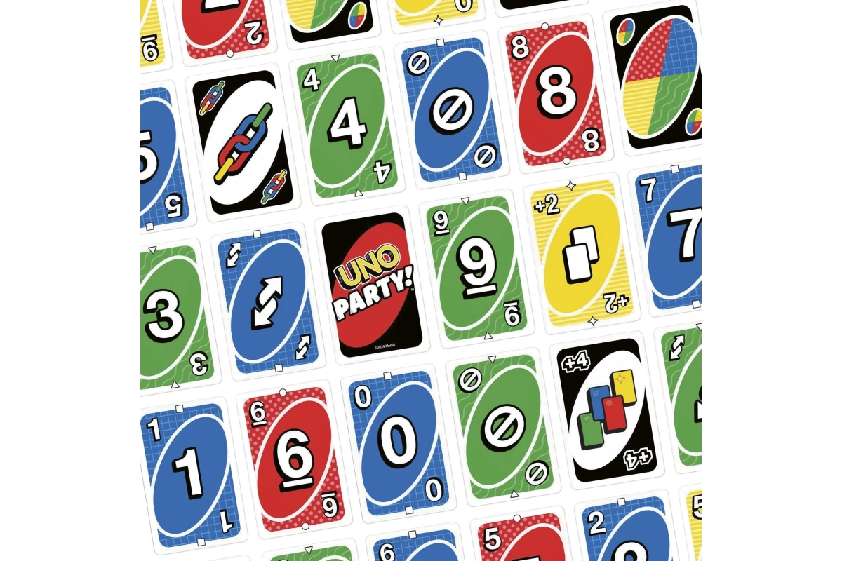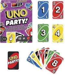 UNO Party atneša patikrintą mėgstamo UNO žaidimo žaidžiamumą didesniame ir triukšmingesniame rinkinyje – idealiai tinka vakarėliams, šeimos šventėms ir vakarams su draugais. Dėl 168 kortų (1,5× klasikinio kaladės) žaidimą gali mėgautis daugiau žaidėjų, o įtampa išlieka ilgiau.