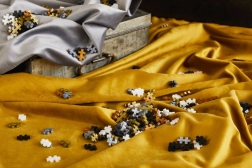 - auksinė, sidabrinė, varinė, juoda, perlamutrinė