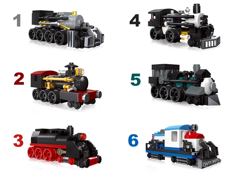 Galimi modeliai skirtingų geležinkelio ikonų gerbėjams: BIGBOY Steam Locomotive, CN5700 Steam Train, GWR Steam Train, TH10 Steam Train, BR01 Steam Locomotive ir GE DASH 8-40C Train. Užsakant nurodykite pasirinktą modelį; jei nebus nurodyta, išsiųsime atsitiktinį variantą.