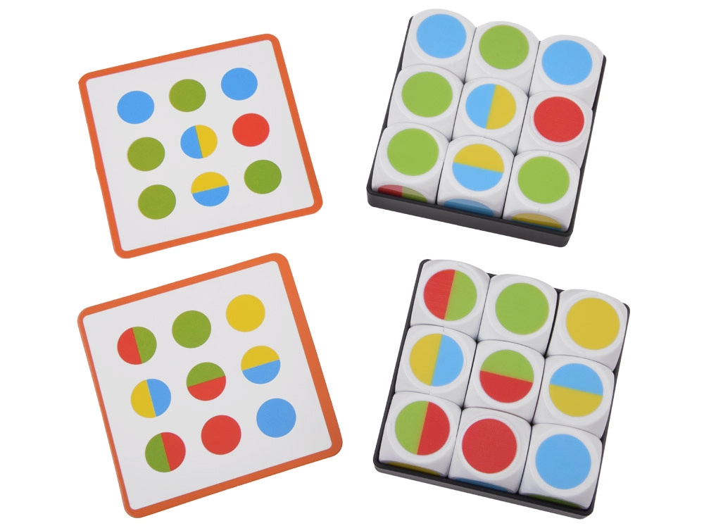 Linksmas ir greitas šeimos žaidimas, kuriame lemia pastabumas, susikaupimas ir greitas mąstymas. Žaidėjų užduotis – kuo greičiau sudėti spalvotą raštą pagal kortelę ir paspausti skambutį anksčiau už varžovą. Puikus pasirinkimas akių ir rankų koordinacijai lavinti ir įtemptoms varžyboms kupinoms juoko.
