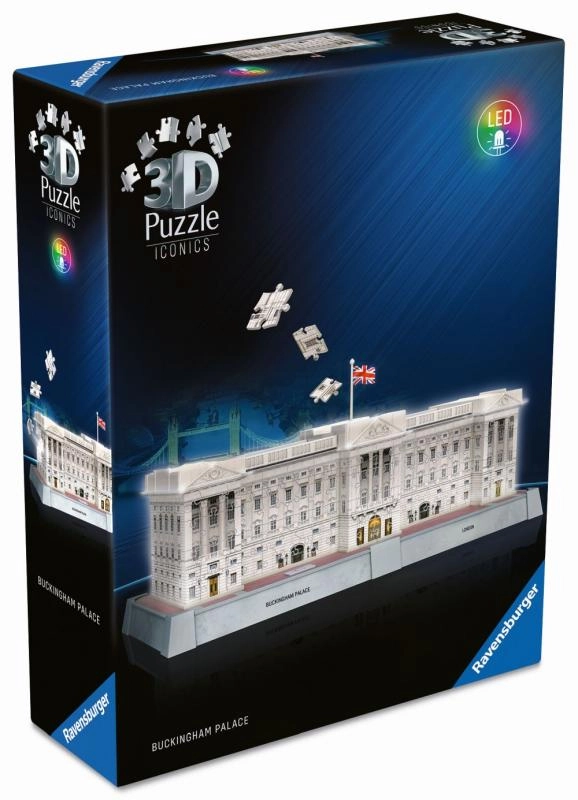 Pastatykite ikonišką Londono dominantę kaip stilingą vitrinai skirtą modelį. „Naktinis leidimas“ iš ICONICS serijos naudoja stabilius plastikinius detalių elementus ir integruotą LED apšvietimą su keliais šviesos režimais, kurie leidžia Bakingamo rūmams įspūdingai suspindėti.
