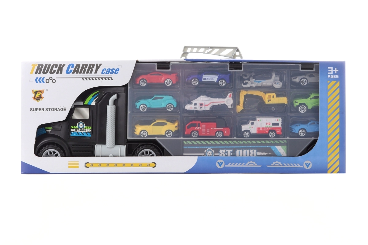 Šis puikus sunkvežimis bet kurį kambarį pavers įtempta autotrasa. Priekaboje rasite gausią komplektaciją – 11 skirtingų automobiliukų ir sraigtasparnį, su kuriais vaikai lengvai sugalvos daugybę žaidimų ir lenktynių. Dėl iššaunamos funkcijos automobiliukai greitai pajuda į priekį, ir pramogos gali prasidėti.