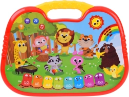 • Melodijų atkūrimas – kiekvienas paspaudimas pagroja kitą žinomos dainelės natą (pvz., Old MacDonald, Twinkle Little Star). Kūrinį keičia raudonas mygtukas su rodyklėmis.