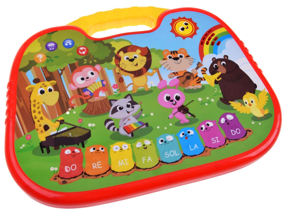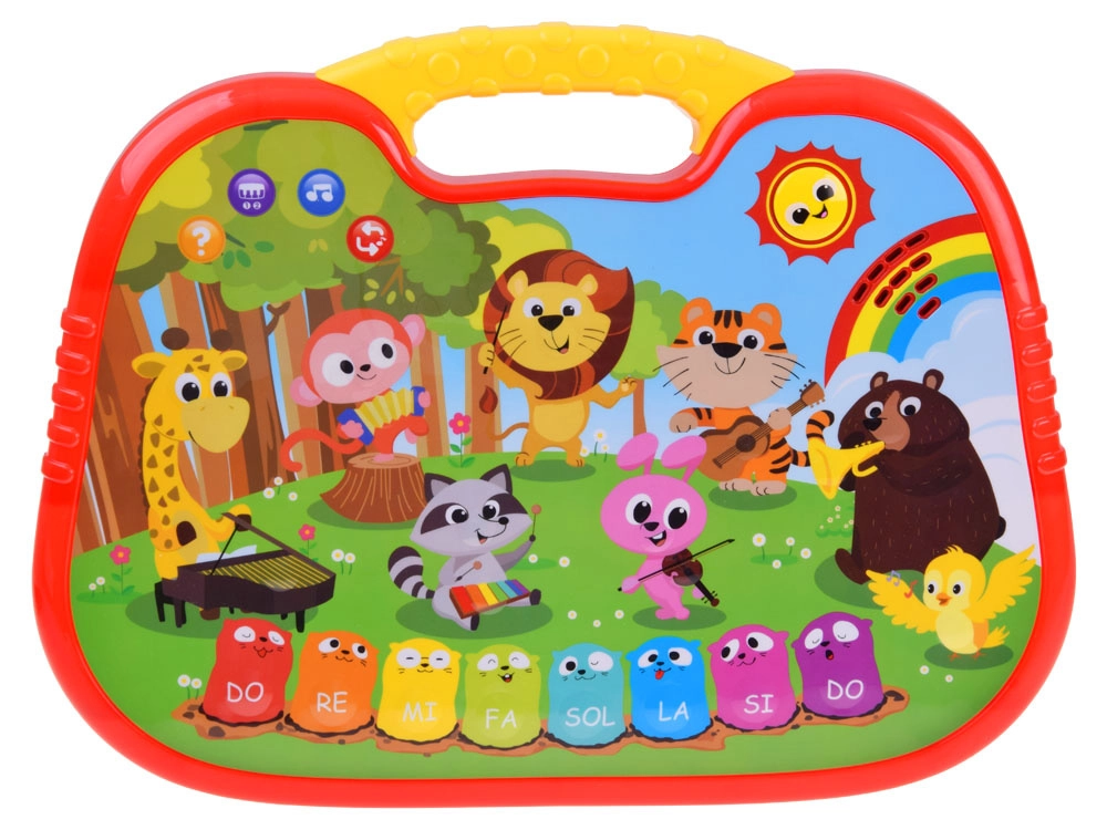 Interaktyvus muzikinis pianinas traukia akį ryškiomis spalvomis, miela gyvūnėlių grafika ir patogia rankenėle lengvam nešiojimui. Lietimui jautrūs, minkšti mygtukai reaguoja tolygiai, todėl groti intuityvu net ir mažesniems vaikams. Be laisvo grojimo klavišais siūlomi ir išmanūs režimai pramogai bei mokymuisi.