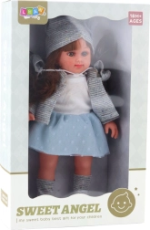 - Lėlė SWEET ANGEL 36,5 cm; stilingi drabužiai (suknelė, megztukas, kepuraitė, batukai)