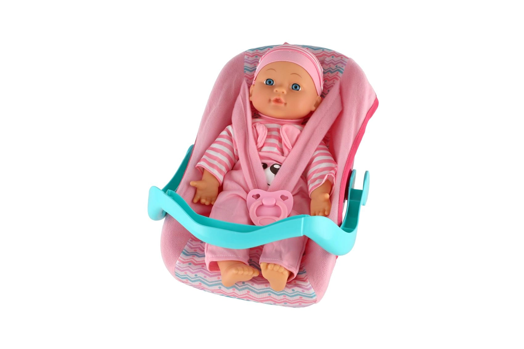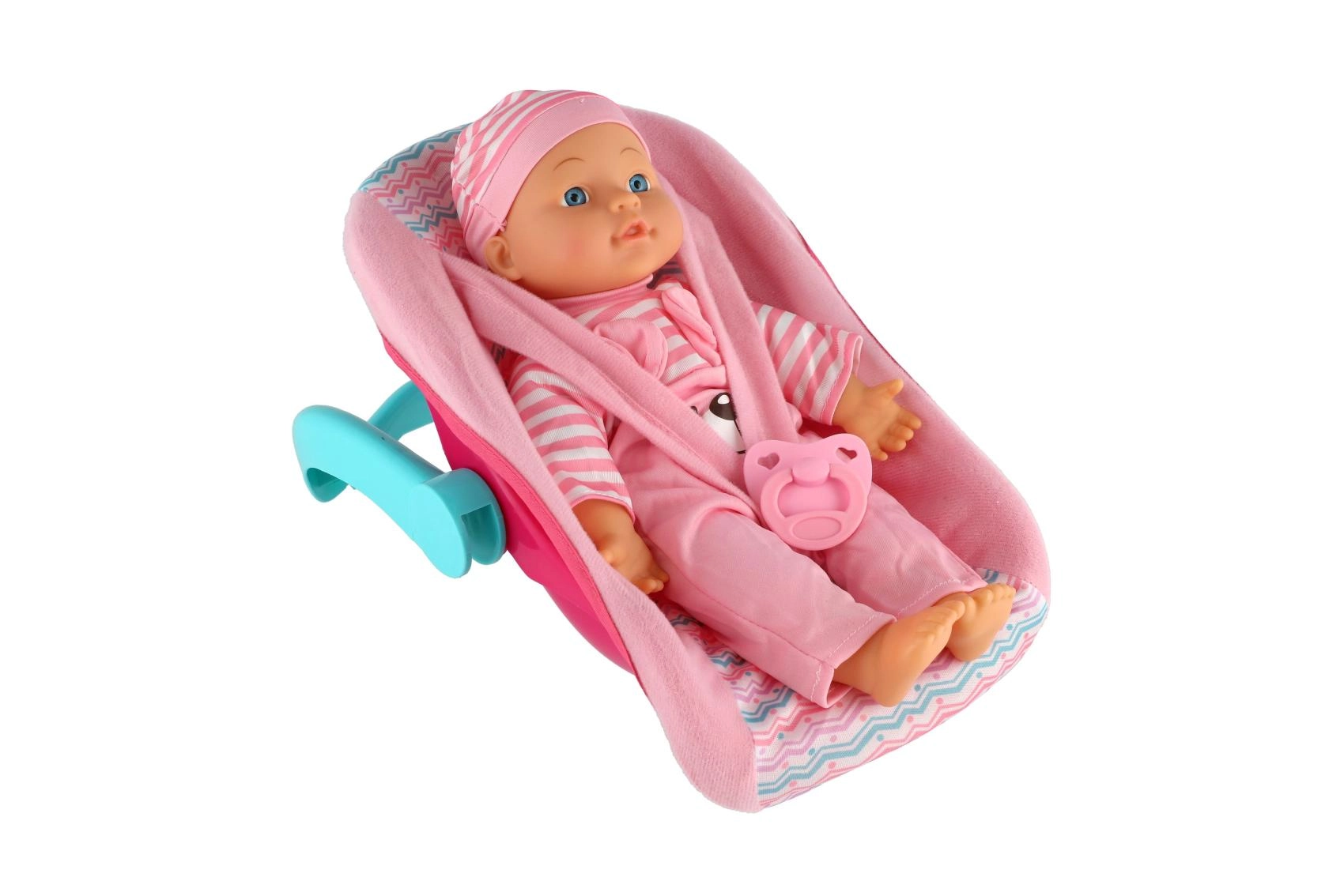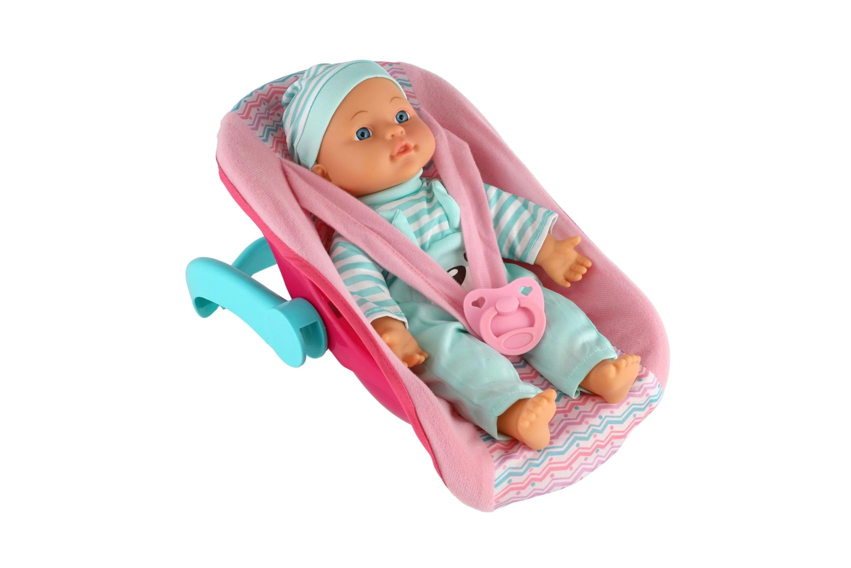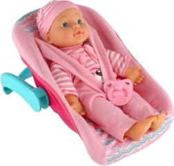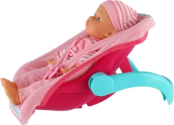 Rinkinyje rasite praktišką nešynę/automobilinę kėdutę su patogia rankena ir saugos dirželiais, kurie leidžia lėlytę lengvai pernešti, pasodinti ar švelniai pasūpuoti. Taip pat pridedamas čiulptukas – idealus aksesuaras raminimui ir migdymui. Žaidimas su lėlyte skatina smulkiosios motorikos, komunikacijos ir empatijos ugdymą.