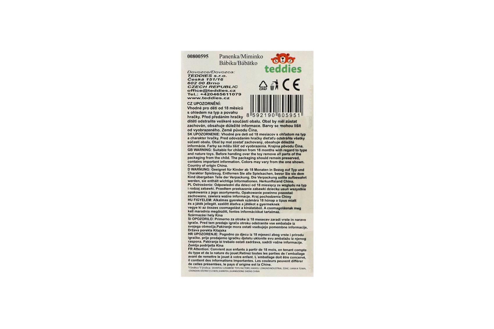 - Minkštas medžiaginis kūnelis, plastikinė galva, rankos ir kojos