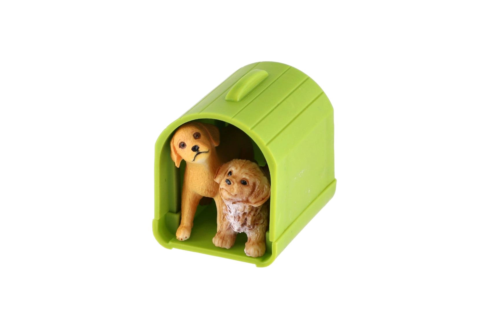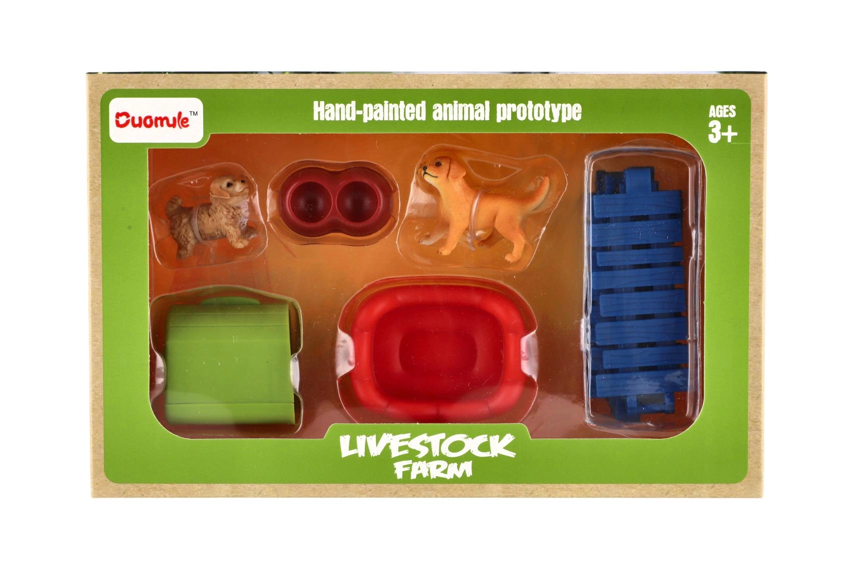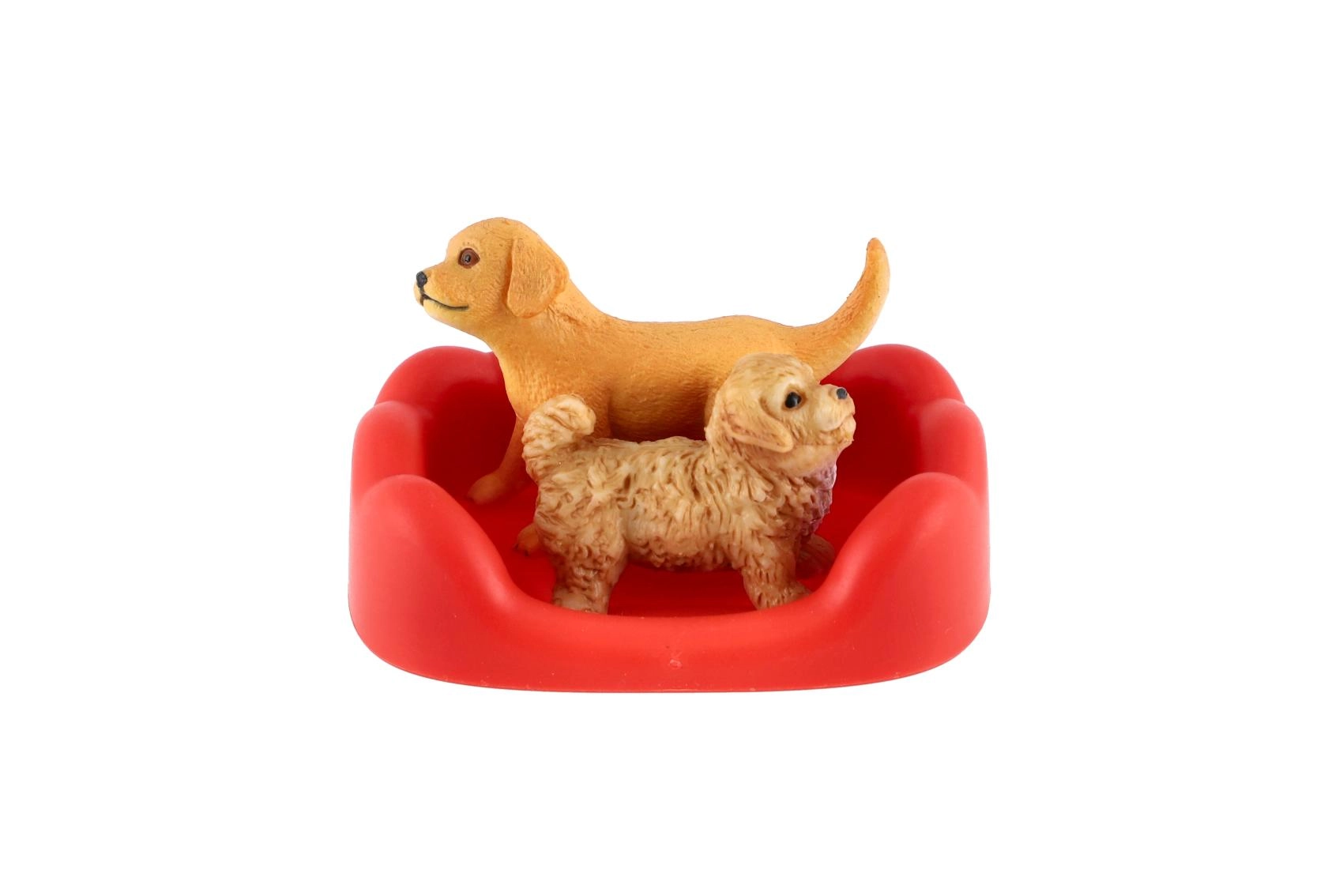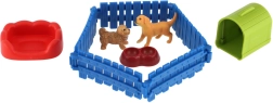 Ši žaidimų rinkinio sudėtyje yra dvi šuniukų figūrėlės su realistiškomis detalėmis, tvorelė aptvarui sukurti ir praktiški priedai, tokie kaip dubenėlis ar guolis. Vaikai gali susikurti savo pasaulį ir mokytis rūpintis gyvūnėliais.
