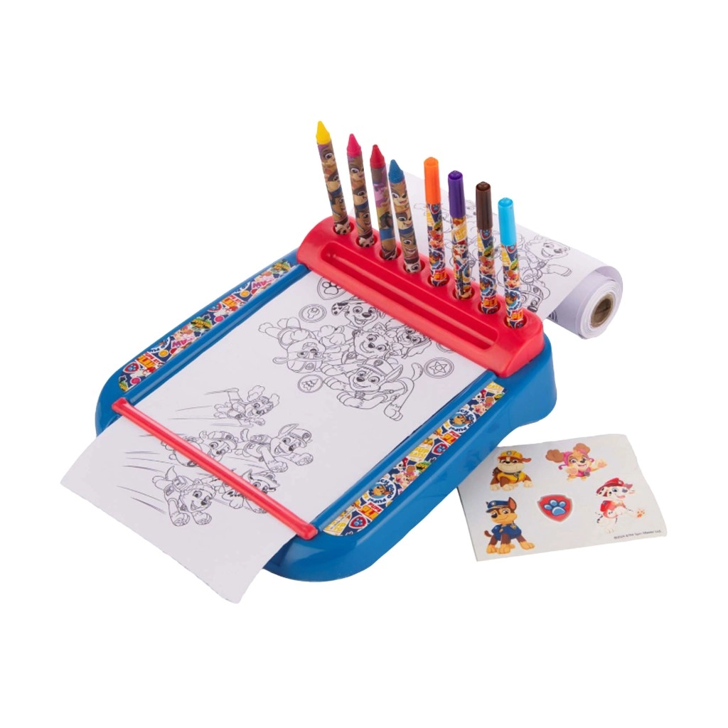 Praktiškas stovas su ritiniu, pilnu PAW PATROL spalvinimo paveikslėlių, pradžiugins kiekvieną mažą kūrėją. Į pakuotę įeina 4 flomasteriai ir 4 vaško kreidelės, kad būtų galima kurti iš karto. Paprasta organizacija, smagus piešimas ir kūrybiškumo ugdymas viename.